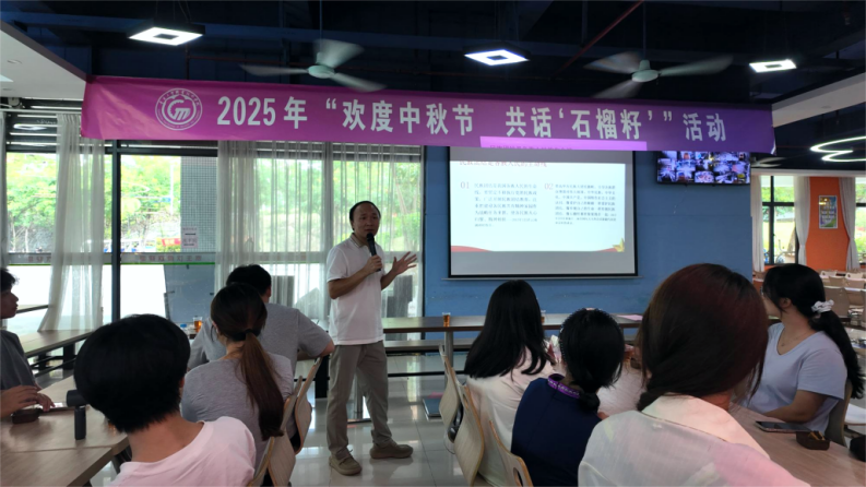 下午,各民族师生代表在桂苑一楼多功能厅开展“欢度中秋节 共话‘石榴籽’”座谈会,线上学习了习近平总书记在全国民族团结进步表彰大会上发表的重要讲话,聆听了马克思主义学院教师晏意华主讲的“铸牢中华民族共同体意识——深入学习习近平总书记关于民族团结的重要论述”思政课,观看了学校在2024年“爱在广东”主题演讲比赛一等奖视频作品《和美广东,我深爱着您》,师生代表在享用月饼的同时,结合自身学习生活经历生动讲述了在广东这片热土上各民族和睦相处、团结奋进的感人故事,表达了对祖国和广东的深厚情感。